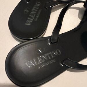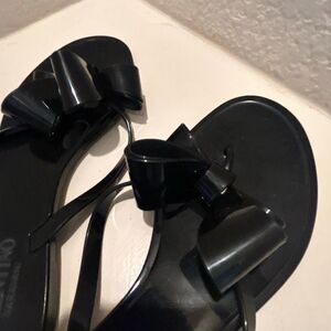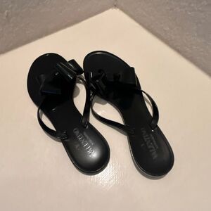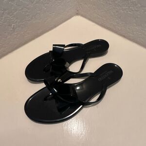 Valentino Garavani Size 40 Jelly Bow Flip Flop Sandals Black Preppy Whimsigoth