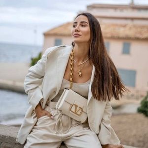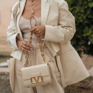 Valentino Garavani Stud Sign Shoulder Bag Light Ivory NIB