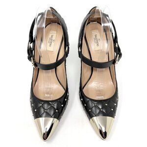 Valentino Garavani Studded Pumps 40.5 Quilted Leather Gold Toe Stiletto