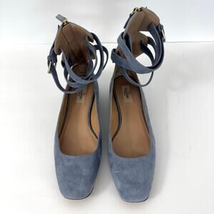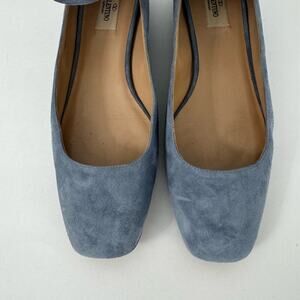 Valentino Garavani Suede Ballet Flats Tango Ankle Wrap in Light Blue IT 41