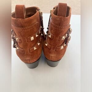 Valentino Garavani Tan Suede Rockstud Double Buckle 50mm Cowboy Ankle Boots EU38