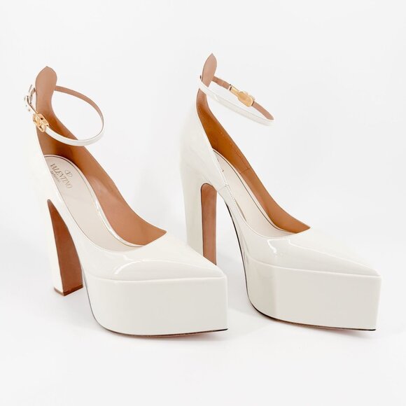 Valentino Garavani Tan-Go Platform Pumps in White Patent Leather