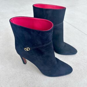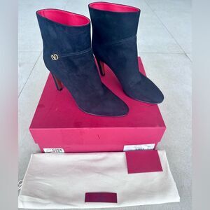 Valentino Garavani VLogo Suede Black Ankle Boots Short Heel Size EU 37 US 7