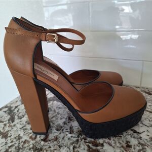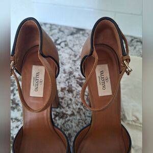 Valentino Garavani Brown Leather Heel Platform Flats Sandals Size 39.5