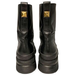 Valentino Garavani Leather Rockstud Platform Biker Boots EU 40 US 10 Black