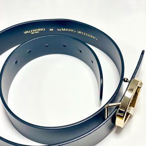 Valentino Giusy V-Logo Black Gold Leather Belt (Size M)