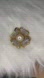 Chic brooch with gold tones. Features a central pearl accent. Ideal for elegant styling.