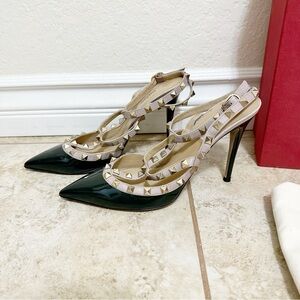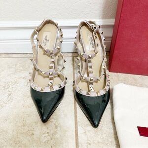 Valentino Green Leather Rockstud Ankle Strap Pumps heels Size 39
