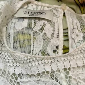 38% viscose, 34% cotton, 28% polyamide Romantic, ethereal soft feminine sheer natural victorian vintage sheer gauze lace sleeve printed sheer collarless