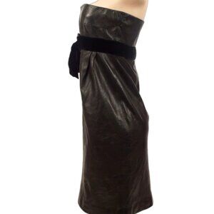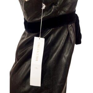Black Valentino lambskin leather strapless neckline with black velvet waist band and lacquer buckle with a back zip closure.