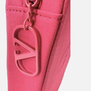Valentino Logo Cosmetic Hard Shell Zipper Red Bag New