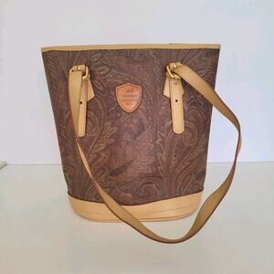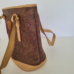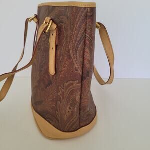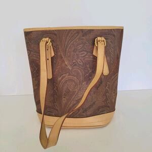 Valentino Marudini Bucket Purse Shoulder Bag Brown Tan Large Paisley Italian