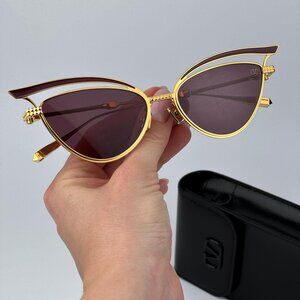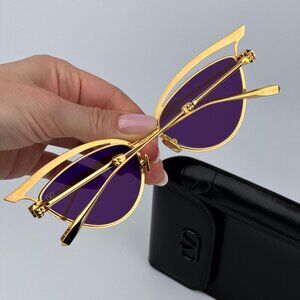 Valentino Men BRAND NEW Sunglasses Titanium Gold Grey Cat Eye V - GLASSLINER