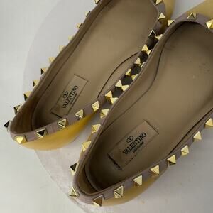 Valentino Metallic Gold Leather Rockstud Ballet Flats Size 38 *flaw