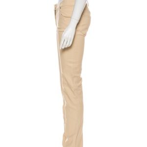 Yellow beige Valentino straight leg, mid-rise jeans with beaded accents.