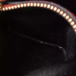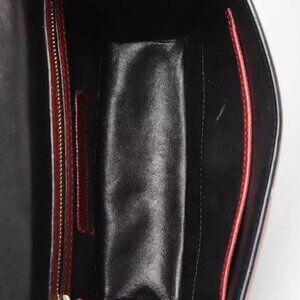 The exterior leather has rubbing, wear and signs of use throughout. The flap top have heavy rubbing, and there is wear and rubbing to the bottom corners. The leather under the flap has rubbed away to the black underneath. The hardware has fading to the lock and scratches throughout. The interior has rubbing and scuffing to the leather throughout.