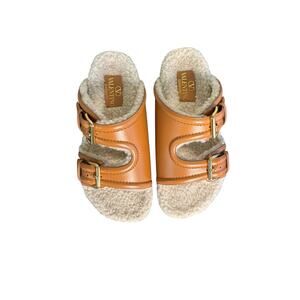 Valentino NIB Fussfriend Shearling Lined Leather Sandals in Brown Size 39.5