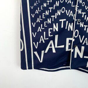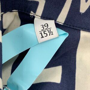 Valentino Navy & White Logo Print Cotton Shirt Size 15.5
