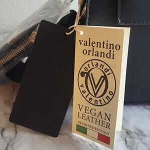 - Elevate your style with the Valentino Orlandi Black Vegan Leather Handbag.