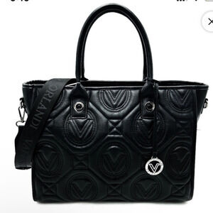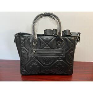 Valentino Orlandi Black Vegan Leather Large Quilted Tote with Mini Bag NWT $329