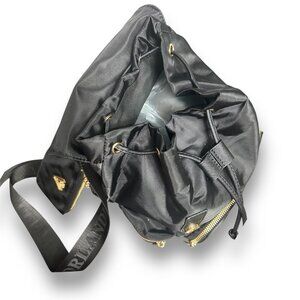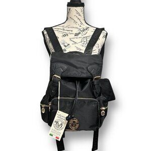 Valentino Orlandi Black Vegan Nylon Backpack w/ Pouch Logo Gold Hardwarware NWT