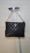 This elegant black quilted handbag features a chic design with a gold chain strap, perfect for any occasion.