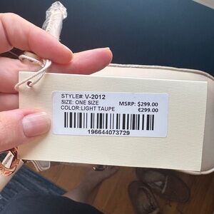 Chic quilted design with signature logo charm. Perfect for stylish outings. Light taupe color, amazing condition! Versatile and classic. Quiet luxury! New with tags.