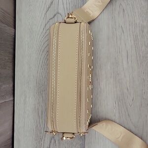Valentino Orlandi Taupe Small Camera Bag Studded Crossbody Vegan Leather NEW