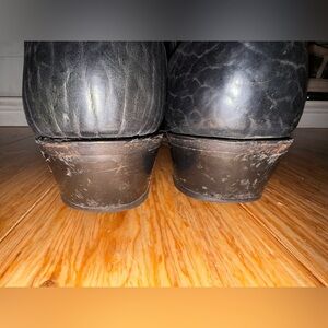 • Leather sole with stacked heel. Some wear