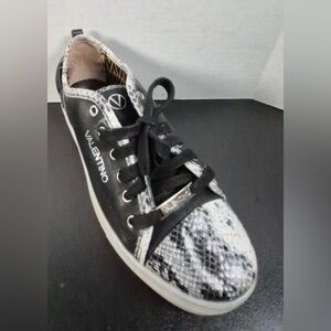 Valentino Platform Sneakers, Black leather with snakeskin Size 9.5