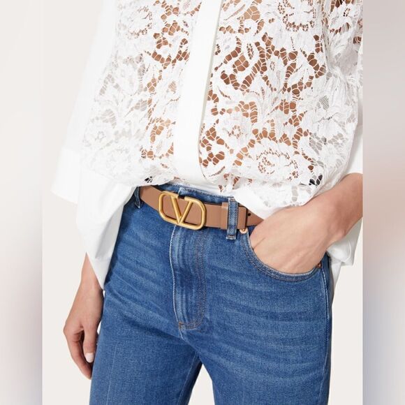Valentino Garavani VLogo Signature reversible belt in glossy calfskin leather.
