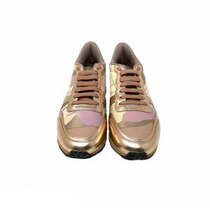 Brand new Valentino Rockrunner low top athletic sneakers in pink leather with colorblock pattern, round toe and rockrunner accents. Featuring lace-up closure at uppers. includes box and dust bag.