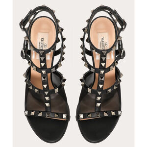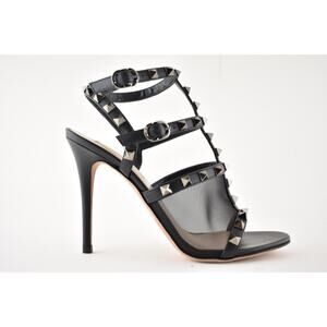 Valentino Rockstud 105 Black Mesh Stud Cage Ankle Strap Sandal Heel Pump 39.5