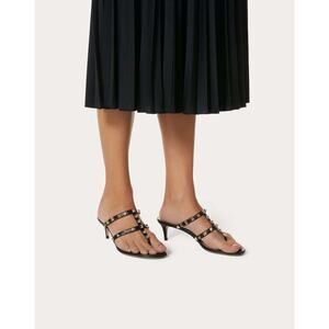 Valentino Rockstud 50 Black Thong Backless Cage Strap Sandal Kitten Heel Pump 39