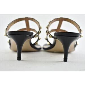 Valentino Rockstud 50 Black Thong Backless Strap Sandal Kitten Heel Pump 39