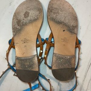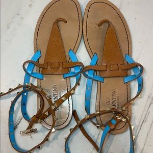 Valentino Rockstud Ankle Wrap Sandal In Cognac leather with Turquoise