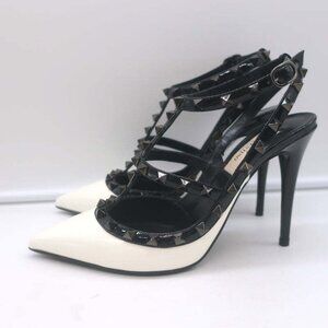 Valentino Rockstud Bicolor Cage Pumps White & Black Patent Leather Size 38.5 NEW