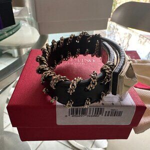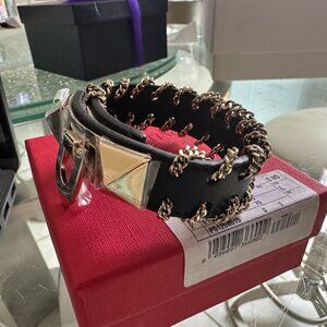 Valentino Rockstud Black Leather whipstitched Chain Bracelet - New, Box, Tags