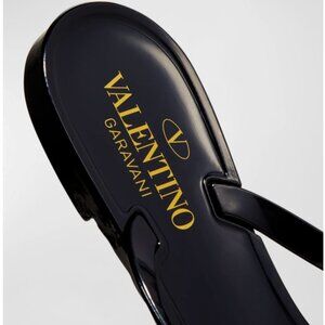 Valentino Rockstud Black PVC Flat Thong Sandals - Size: 9 | 39 EU