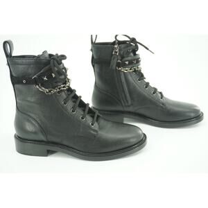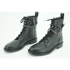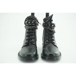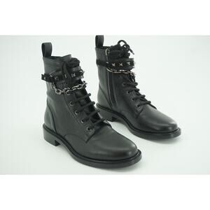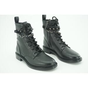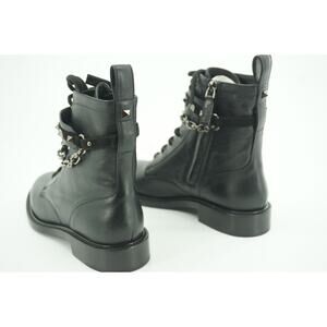 Valentino Rockstud Chain Combat Ankle Boots Size 37 black Leather $1290