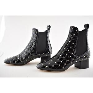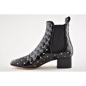 Valentino Rockstud Chelsea Spike Black Patent Stud Heel Short Ankle Bootie 37