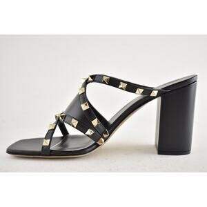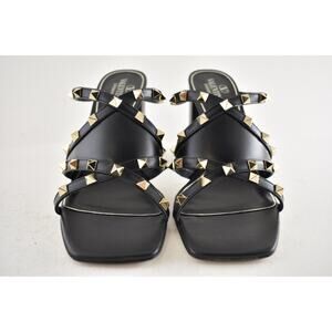 Valentino Rockstud Crisscross Leather Black Strappy Pump Block Heel Sandal 38.5
