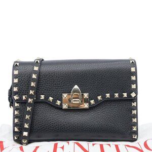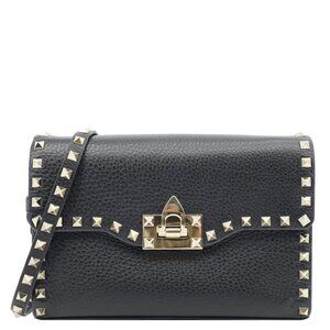 Valentino Rockstud Flip Lock Small Grained Calfskin Leather Crossbody Bag Black