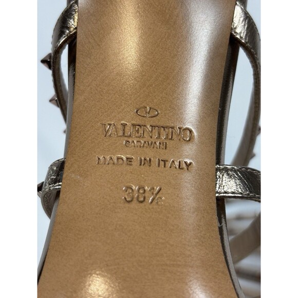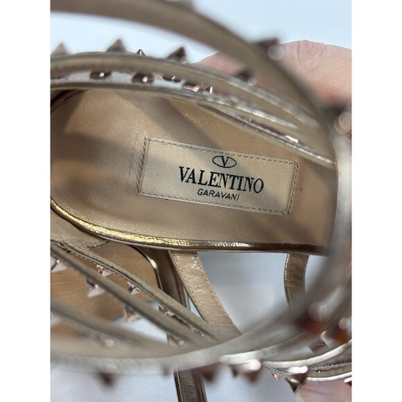 Valentino Rockstud Lovestud Cage Sandals Gold Bronze Studded Strappy Stiletto Heels Size 38.5
