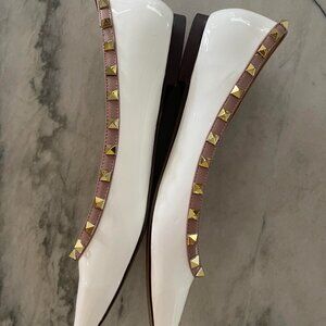 Ivory / White "Goldtone pyramid studs gleam around the topline of a pointy-toe flat that impeccably balances ladylike elegance with rocker edge." Worn once inside, perfect condition.