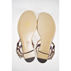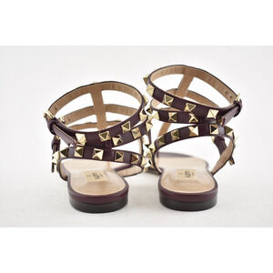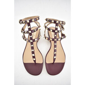 Valentino Rockstud Red Burgundy Leather Triple Strap Gladiator Flat Sandal 35