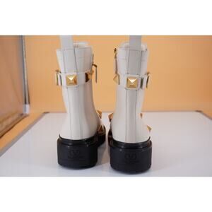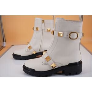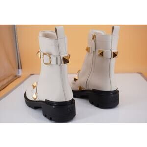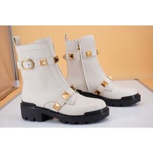 Valentino Rockstud Roman Combat Ankle Boots Size 37 White Leather $1790 Lug