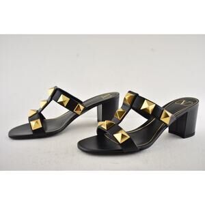 Valentino Rockstud Roman Stud Black City 60mm Slide Mule Sandal Block Heel 37.5