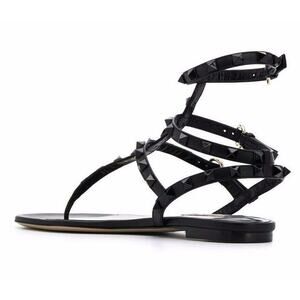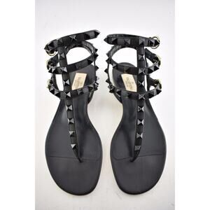 Valentino Rockstud So Black Leather Triple Ankle Strap Gladiator Flat Sandal 35