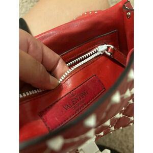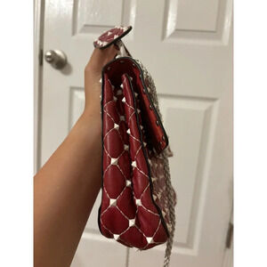 Valentino Rockstud Spike Red White Quilted Handle Shoulder chain Bag.